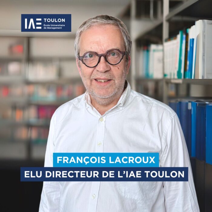 L’IAE Toulon a le plaisir d’annoncer l’élection de François Lacroux au poste de directeur de l’institut. Il succède à Corinne Van der Yeught, qui fait valoir ses droits à la retraite après dix années d’un engagement exemplaire au service du développement et du rayonnement de l’IAE.