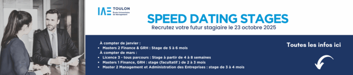 Comme chaque année l’IAE de Toulon organise son Speed-Dating stages pour ses masters afin de :